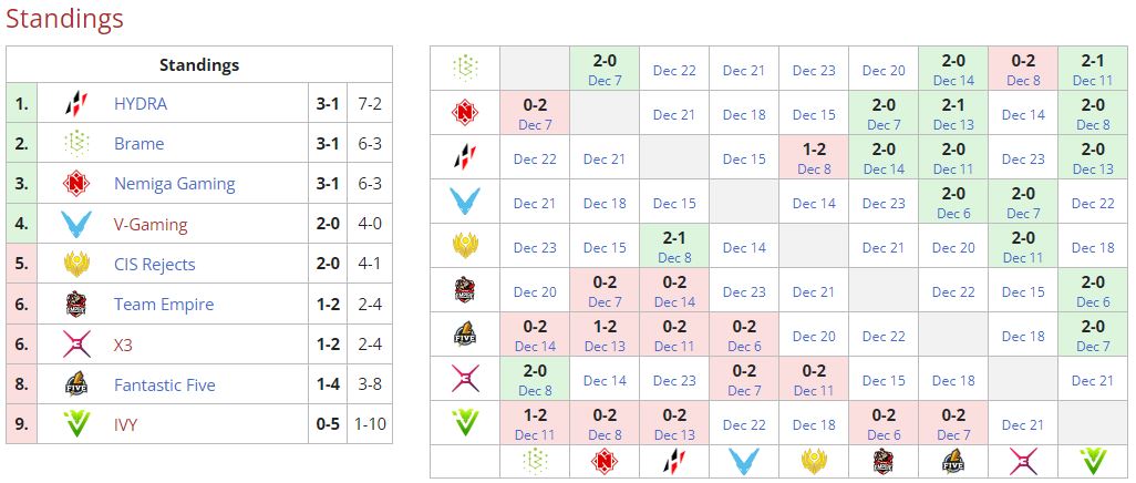 Следующую встречу Hydra проведет против V-Gaming 15 декабря в 18.00. “Империя” в этот же день в 15.00 сыграет с X3.