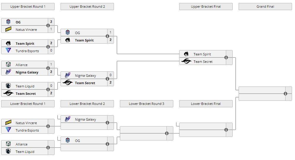 Team Secret нанесла поражение Nigma Galaxy в полуфинале верхнее сетки OGA Dota PIT: Season 5. Напряженная встреча завершилась со счетом 2:0. Парни из “Нигмы” продолжат борьбу в нижней сетке турнира, их соперником 17 декабря в 20.00 станет победитель пары Natus Vincere и Tundra Esports. Secret сразится с Team Spirit за право сыграть в гранд-финале 19 декабря в 23.00.