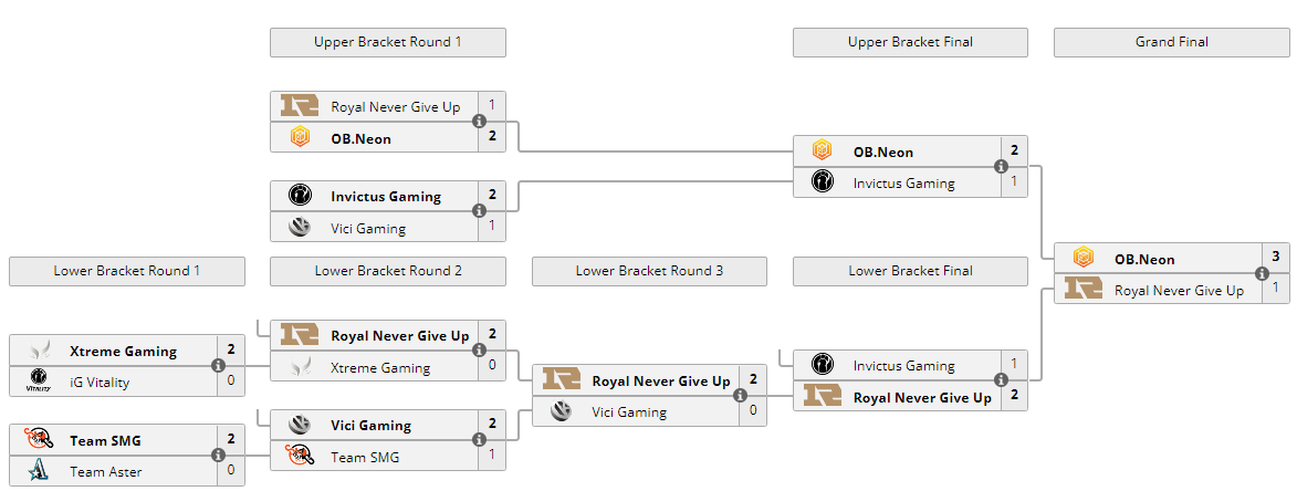 В гранд-финале Huya Winter Invitational 2021 команда OB Esports x Neon обыграла Royal Never Give Up со счетом 3:1.