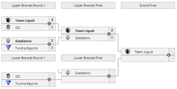 В матче верхней сетки регионального DPC-финала для Западной Европы Team Liquid со счетом 2:0 обыграла Gladiators и вышла в гранд-финал турнира.