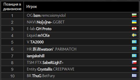 Мидер OG Божидар bzm Богданов захватил лидерство в европейском ладдере по Dota 2. Вторым в списке является Мидер NaVi Владимир No[o]ne Миненко. Марун GH Мерхей из Nigma Galaxy — третий.