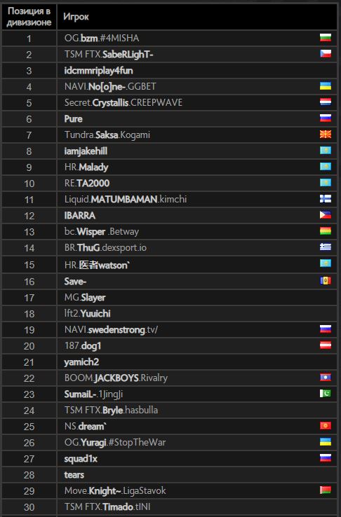 Отметим, первая строчка ладдера принадлежит мидеру OG Божидару bzm Богданову. Йонаш SabeRLight- Волек из TSM — второй.