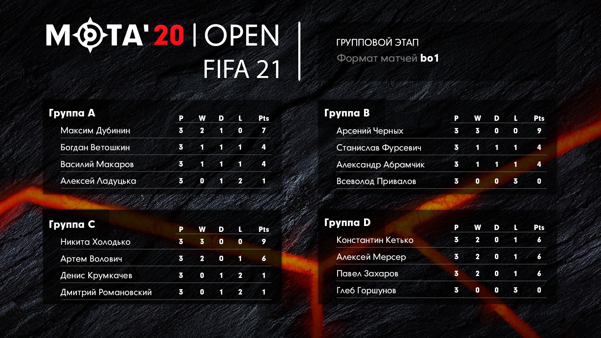Игры МЭТА’20 Open: стал известен состав участников плей-офф 31 октября, 2020 14:16 Стали известны результаты группового этапа и посев команд в плей-офф на турнире по FIFA 21 от Белорусской Федерации Киберспорта МЭТА’20 Open. Победитель турнира станет известен сегодня. Призовой фонд: 1 место — $350; 2 место — $100; 3 место — $50. Метки:FIFA FIFA 21