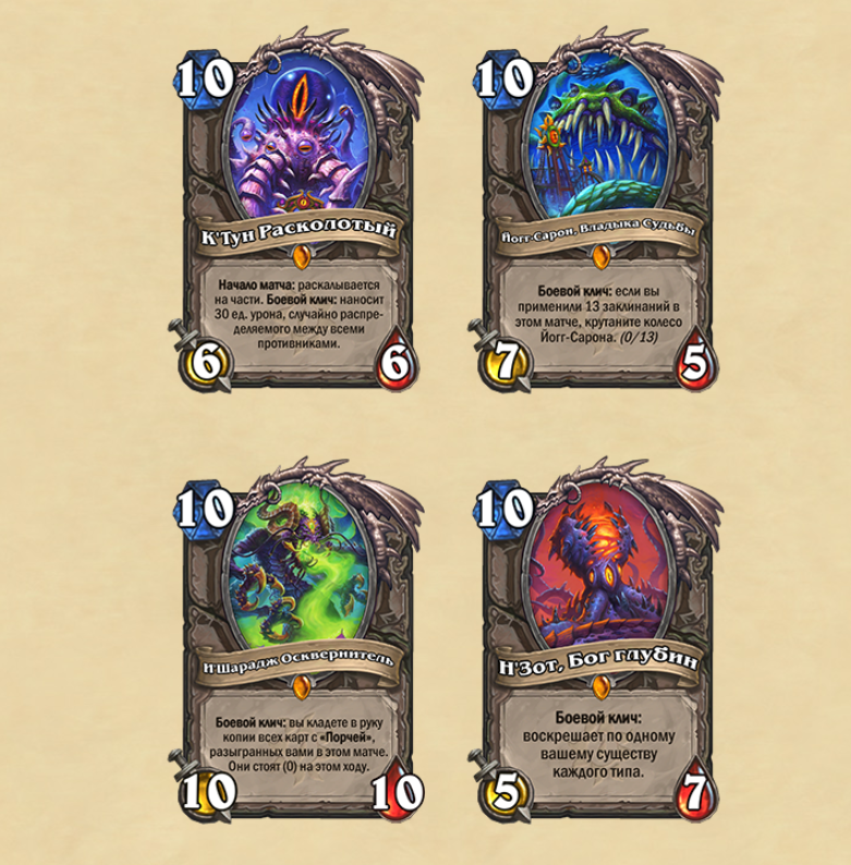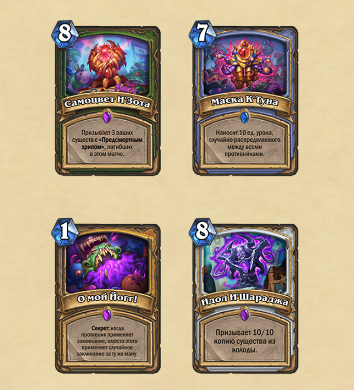 Сегодня вечером вышло дополнение «Ярмарка безумия» для Hearthstone. Игрокам стали доступны новые 135 карт. Ключевой механикой в обновлении стала “Порча”, карты с ней будут улучшаться в вашей руке, если вы разыграете еще одну более высокой стоимости. Также в игру вернулись Древние боги в новом обличии. Они принесли с собой именные артефакты с удивительными свойствами.