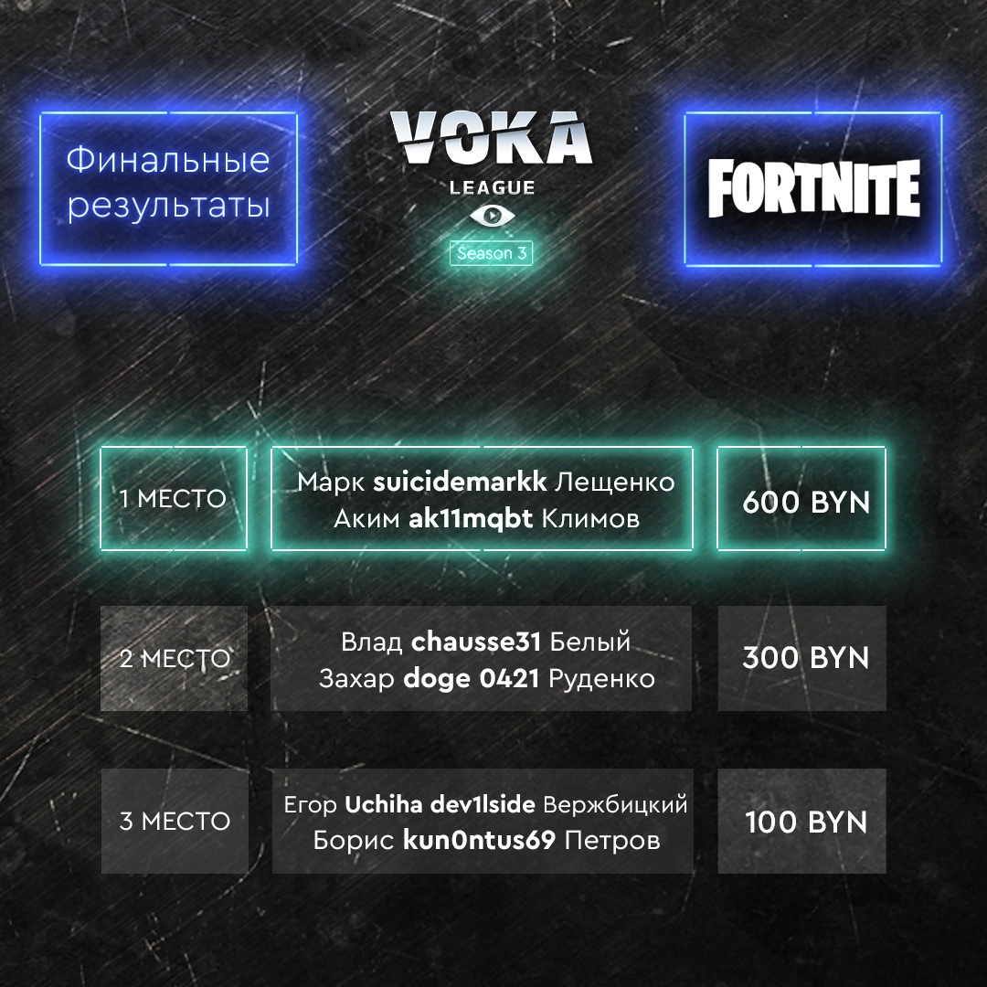 Cегодня состоялись финальные матчи VOKA League Season 3 по дисциплине Fortnite.
