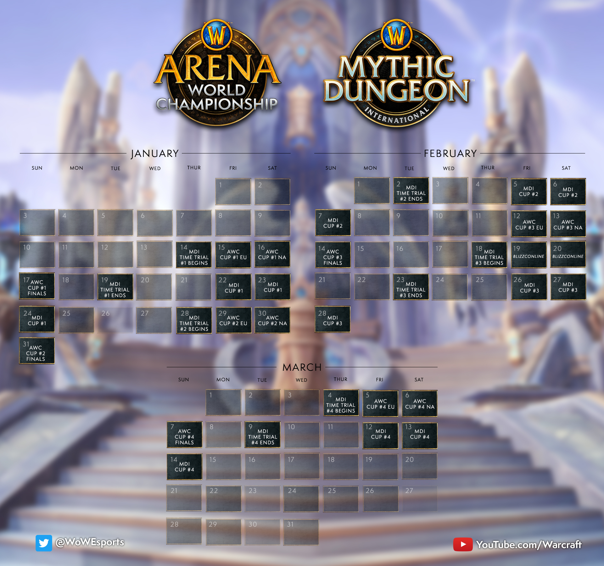 Кроме того, 14 января также начнется новый сезон Mythic Dungeon International. Blizzard представила комбинированный календарь событий на ближайшие 3 месяца.