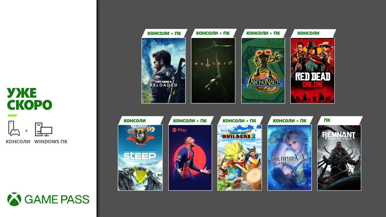 Помимо этого, пользователи получат Dragon Quest Builders 2, симулятор сноубординга Steep, jRPG Final Fantasy 10/10 — 2 HD Remaster, Just Cause 4: Reloaded, Red Dead Online и Remnant: From the Ashes.