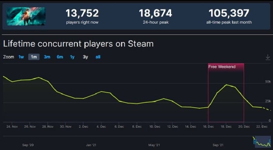 Подобные результаты редкие для новинок, поскольку они часто теряют аудиторию после релиза. Это особенно заметно на фоне неудачного релиза Battlefield 2042.