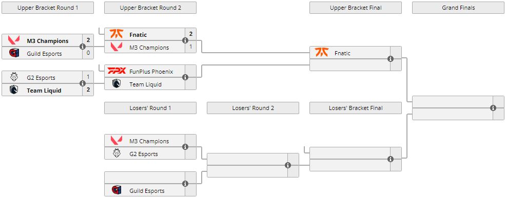 M3 Champions упали в нижнюю сетку, где 24 марта сыграют с G2 на вылет с турнира. Fnatic сразится против победителя пары Liquid — FunPlus Phoenix за место в гранд-финале ивента.
