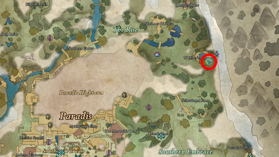 - От Claviger’s Landing идите на север, обогните Paradis и двигайтесь к Yellowband Camp.