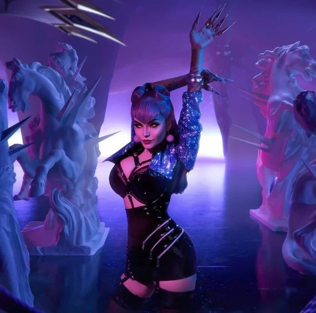 В альтернативном образе участницы группы KDA она представлена как более современная, гламурная версия себя, которая отражает черты поп-культуры. Здесь её сексуальность и опасность комбинируются с элементами артистизма и шоу-бизнеса. Делимся подборкой лучшего косплея на Эвелин.