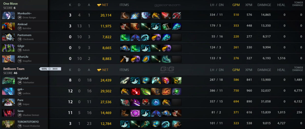 BetBoom Team с трудом одолела команду One Move в рамках матча первого дивизиона DPC 2023 Tour 1 для Восточной Европы. Игра окончилась со счетом 2:0. Но несмотря на сухой счет, вторая карта продлилась более 75 минут и была в шаге, чтобы отойти коллективу белорусов Алексею «Ainkrad» Дивеевскому и Никите «Pantomem» Балаганину.