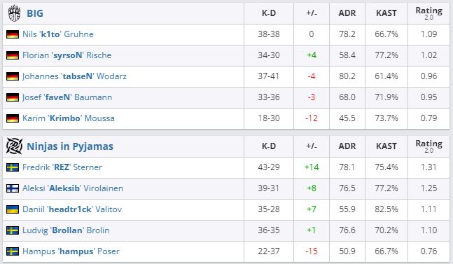 NiP одержала дебютную победу с украинцем Даниилом “headtr1ck” Валитовым в составе. Шведская организация оказалась сильнее BIG на BLAST Premier: Spring Groups 2023 — 2:0 (Mirage — 16:14, Inferno — 16:11).