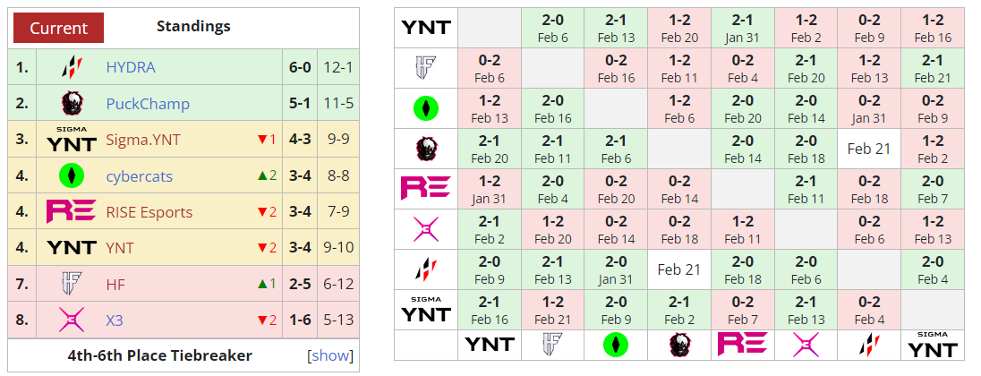 HYDRA и PuckChamp досрочно выиграли слоты в первый дивизион Dota Pro Circuit 2023 Восточной Европы. Для такого результата оказалось достаточно пять побед у PuckChamp и шесть у HYDRA. Команды еще не играли друг с другом и встреча коллективов завершит турнир, однако от ее исхода будет зависеть только распределение призовых (1-е место — $17 тыс., 2-е место — $16 тыс.).