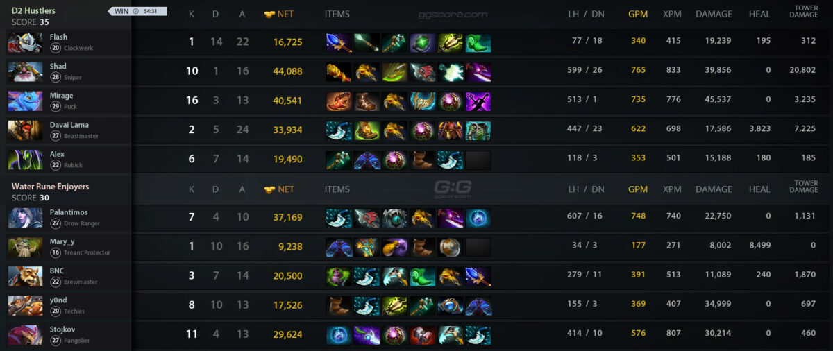 20.00. D2 Hustlers — Water Rune Enjoyers — 2:0