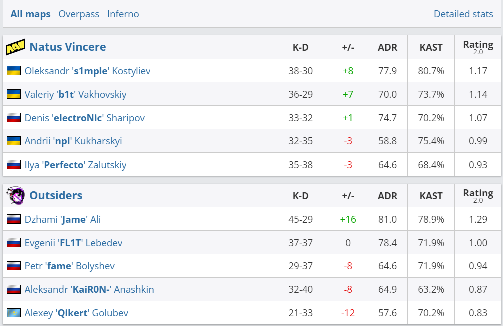 Состав NaVi по CS:GO одержал победу над Outsiders в рамках дебютного матча стадии плей-офф на Intel Extreme Masters Katowice 2023. Сражение окончилось со счетом 2:0. Самым результативным игроком стал Джами “Jame” Али. Несмотря на поражение, капитан “Медведей” настрелял лучший рейтинг на карте — 1.29.