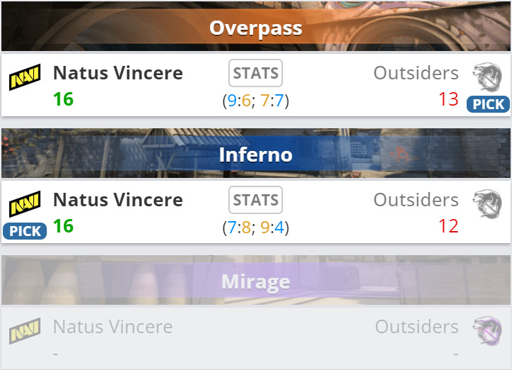 Outsiders покинули турнир, заняв 5-6 место и заработав $40 000. NaVi прошли в полуфинал, где встретятся с Heroic. Матч пройдет 11 февраля в 10:30.