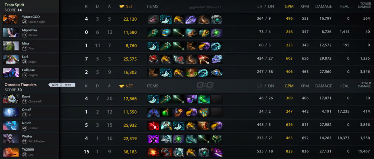 Team Spirit — Ooredoo Thunders — 2:1