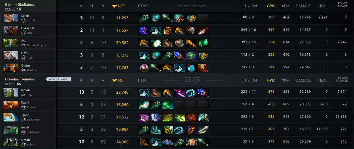 19.00. Gaimin Gladiators – Ooredoo Thunders — 1:2
