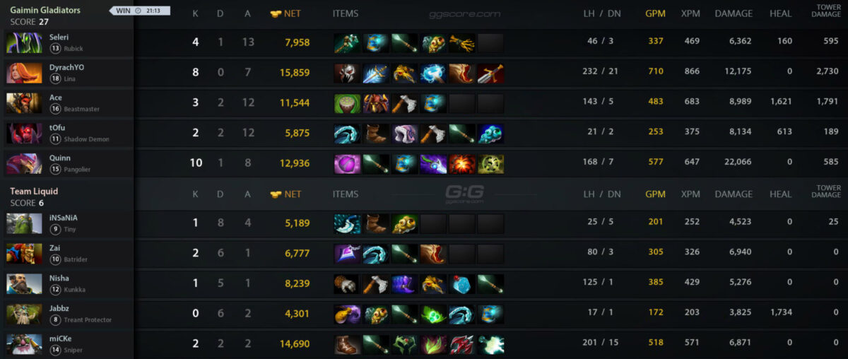 Вместе с титулом чемпиона Gaimin Gladiators заработали $200 000 и 400 очков DPC. Серебряный призер Team Liquid получил всего $100 000 и 350 поинтов. Отметим, что GG не проиграли ни одной карты за всю стадию плей-офф.