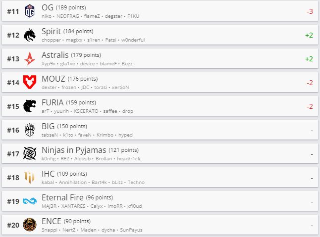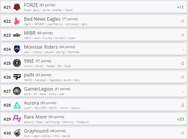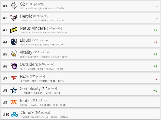 Киберспортивный портал HLTV обновил рейтинг CS:GO-команд. Natus Vincere вернулись в топ-3. Лидирует в списке все так же G2. Китайская организация Rare Atom поднялась в рейтинге на 33 строчки и занимает теперь 29-е место.