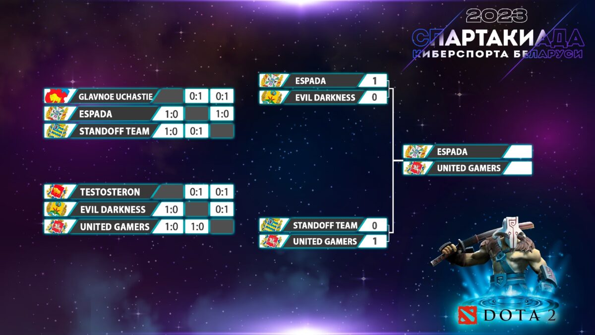 В финал по “танкам” прошли коллективы Please Let и KCHAU. В Dota 2 сильнейшими оказались Espada и United Gamers.