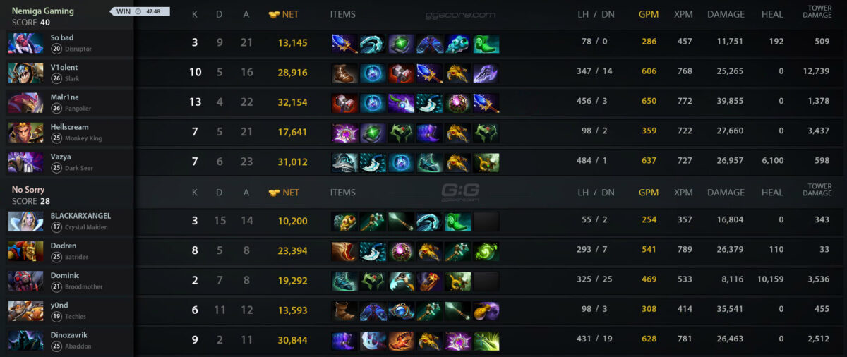 13.00. Nemiga Gaming — No Sorry — 2:1