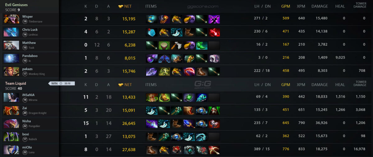 15.30. Team Liquid – Evil Geniuses — 2:0