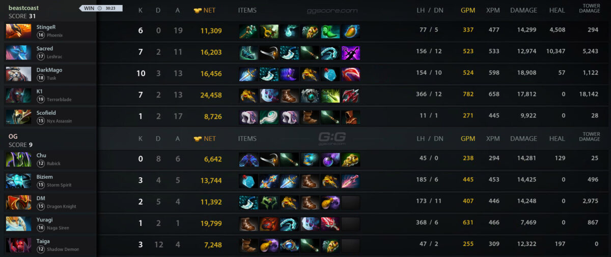 19.00. beastcoast – OG — 2:0