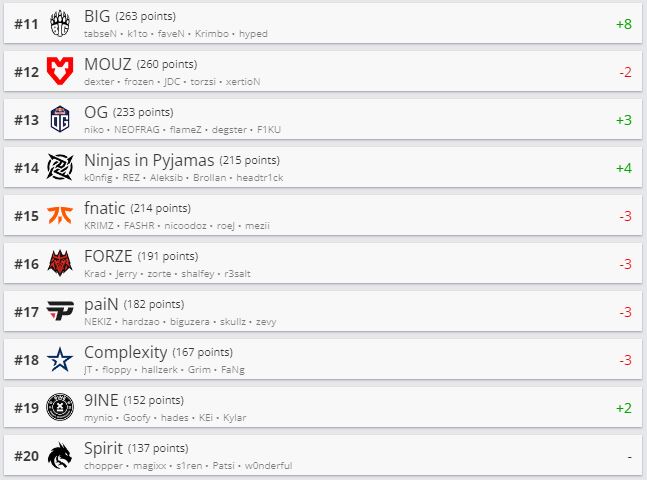 Websterz поднялась в рейтинге на 103-е место. Iron Branch упала на 69-ю строчку. Nemiga Gaming все еще не имеет рейтинга.