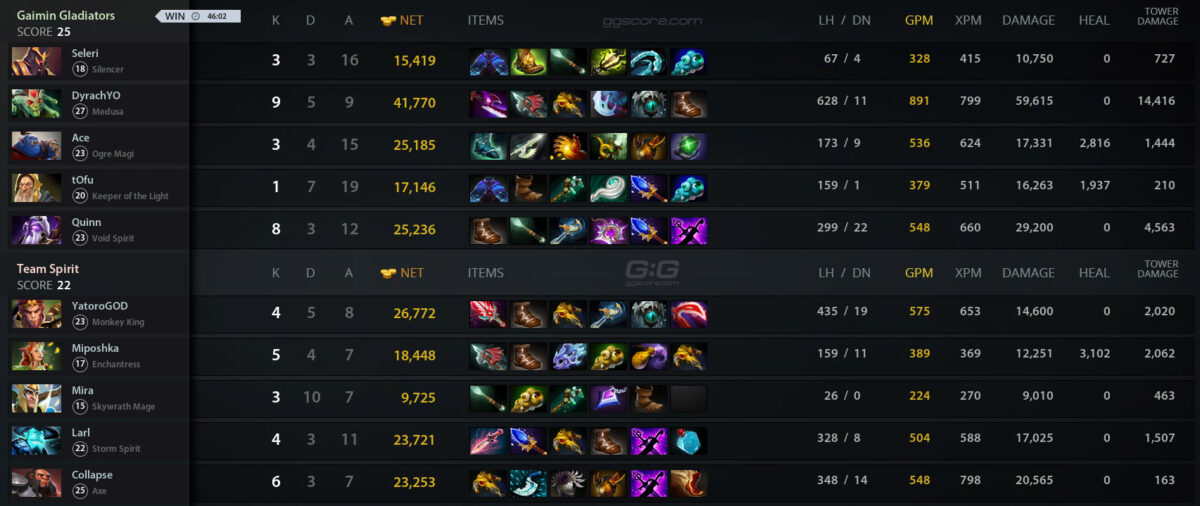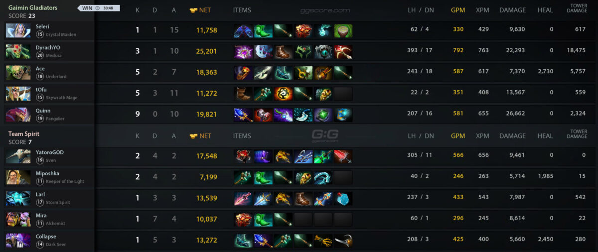 12.00. Gaimin Gladiators – Team Spirit — 2:0