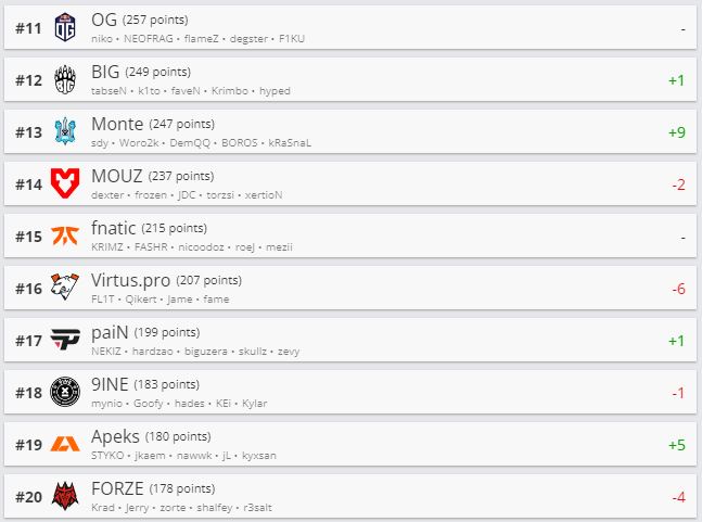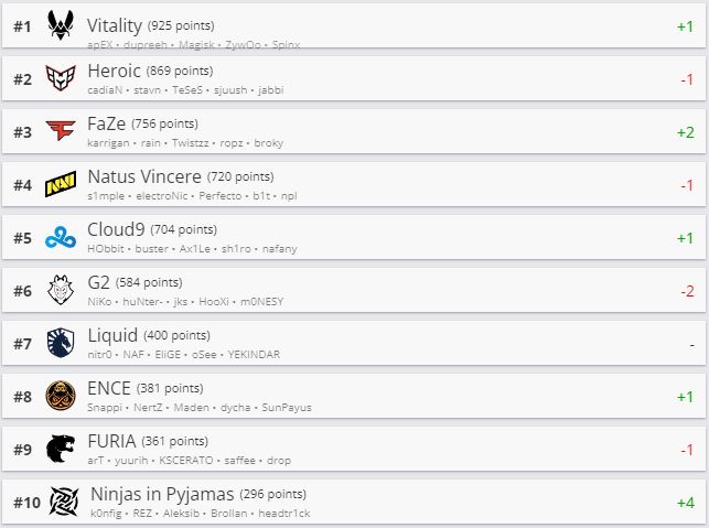 Киберспортивный портал HLTV обновил рейтинг CS:GO-команд. Лидирует в списке теперь Vlitalty. Вслед идет Heroic, далее — FaZe Clan.