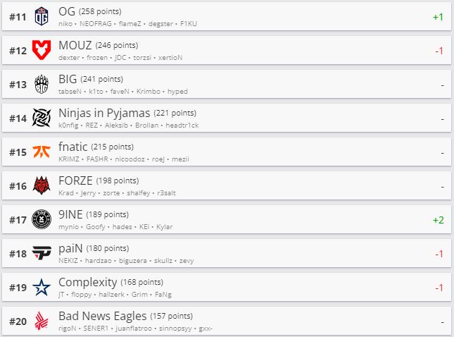 Отметим, Websterz поднялась в рейтинге на 81-е место. Iron Branch упала на 71-ю строчку. Nemiga Gaming все еще не имеет очков рейтинга.