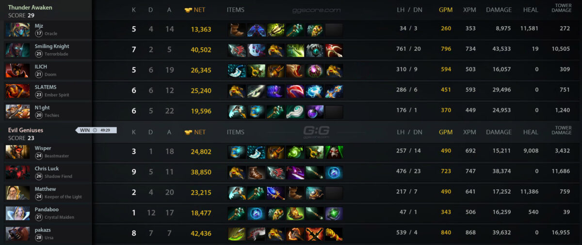 Thunder Awaken не смогла сотворить сенсацию в матче второго круга первого дивизиона Dota Pro Circuit 2023 Южной Америки. Коллектив белоруса Алексея “Knight~” Свиридова уступил Evil Geniuses — 0:2.