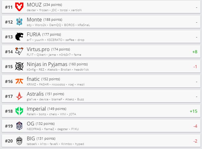 Websterz поднялась в рейтинге на свое пиковое место — 67. Iron Branch теперь 80-я. Nemiga по-прежнему не имеет баллов рейтинга.