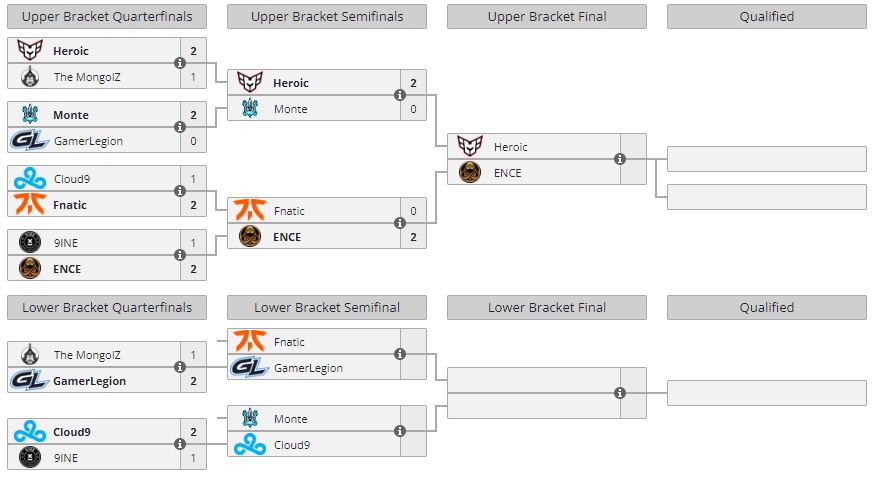 Завершился второй игровой день на IEM Cologne 2023 по CS:GO. По его итогам ENCE обыграла Fnatic (2:0) и вышла в плей-офф ивента. Также путевку в следующую стадию добыла Heroic, одолев Monte (2:0).