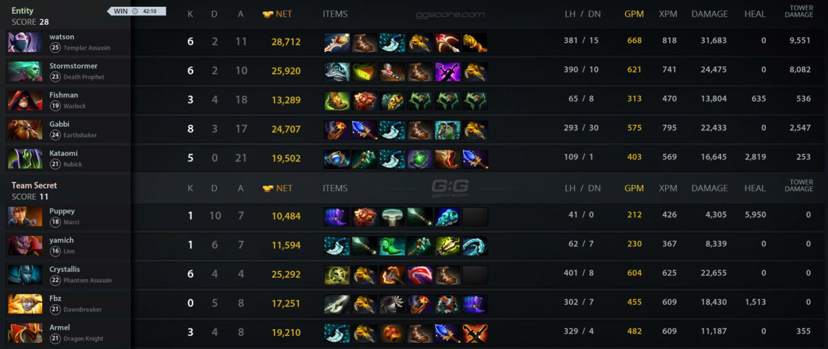 Состав Entity по Dota 2 вышел в финал верхней сетки закрытой квалификации на The International 2023. Во втором раунде турнира состав белоруса Дмитрия “Fishman” Полищука обыграл Secret — 2:0.