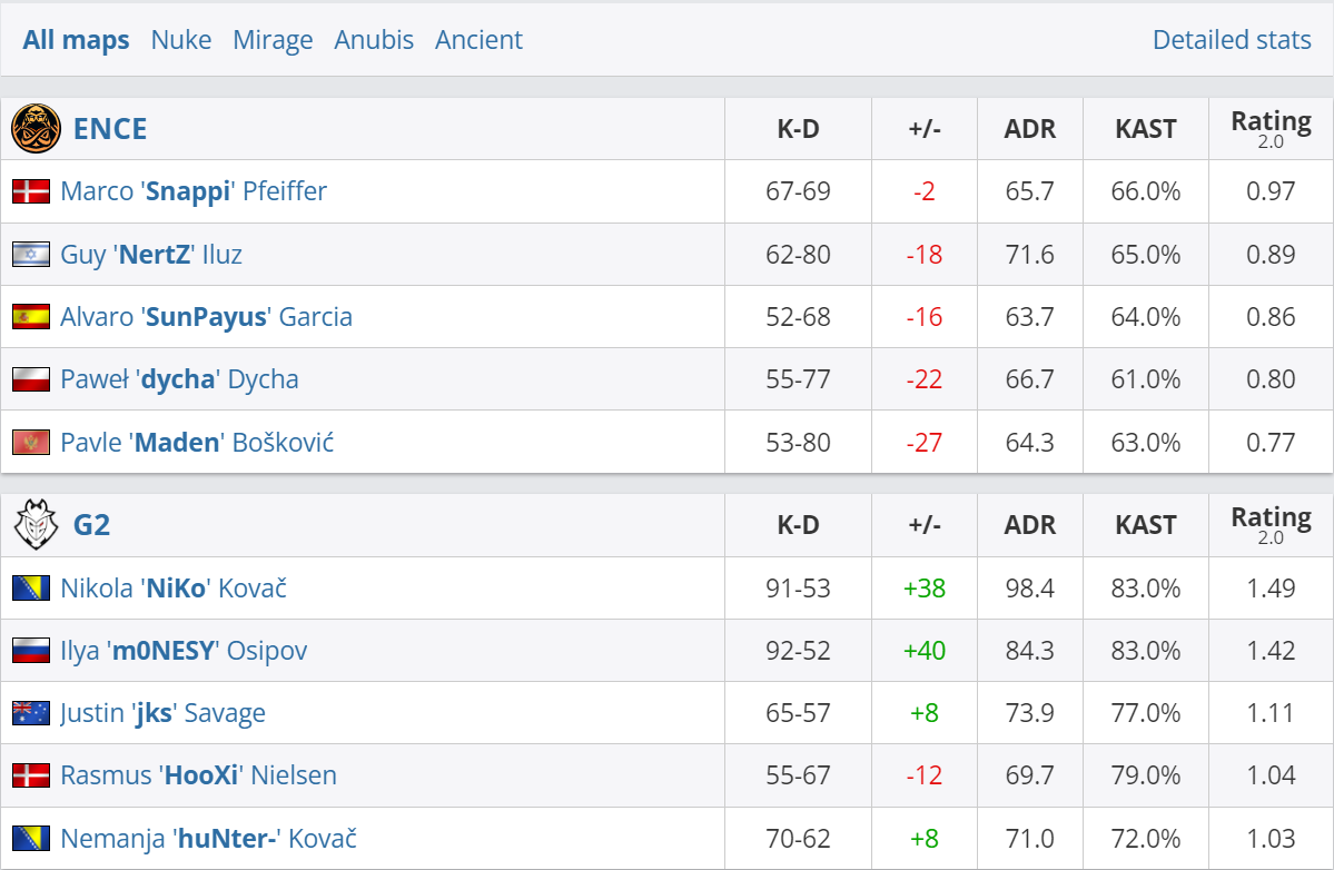 Команда G2 Esports стала чемпионом главного летнего турнира по CS:GO — Intel Extreme Masters Cologne 2023. В гранд-финале коллектив Расмуса “HooXi” Нильсона разгромил своих оппонентов из ENCE. Встреча окончилась со счетом 3:1. Лучшим игроком матча и вместе с этим MVP всего турнира стал Никола “NiKo” Ковач, настрелявший за четыре карты 91 фраг при 53 смертях и итоговый рейтинг 1.49. Недалеко от легендарного боснийца по результатам мейн-ивента ушел его тиммейт Илья “mONESY” Осипов с практически таким же K/D и рейтинге 1.42.