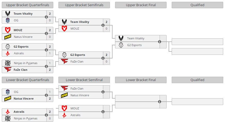Отметим, последние матчи группового этапа пройдут сегодня, 1 августа. В группе “A” один слот в плей-офф разыграют между собой GamerLegion и Cloud9. В “B” за путевку в топ-6 поборются FaZe Clan, NaVi, Mouz и Astralis.