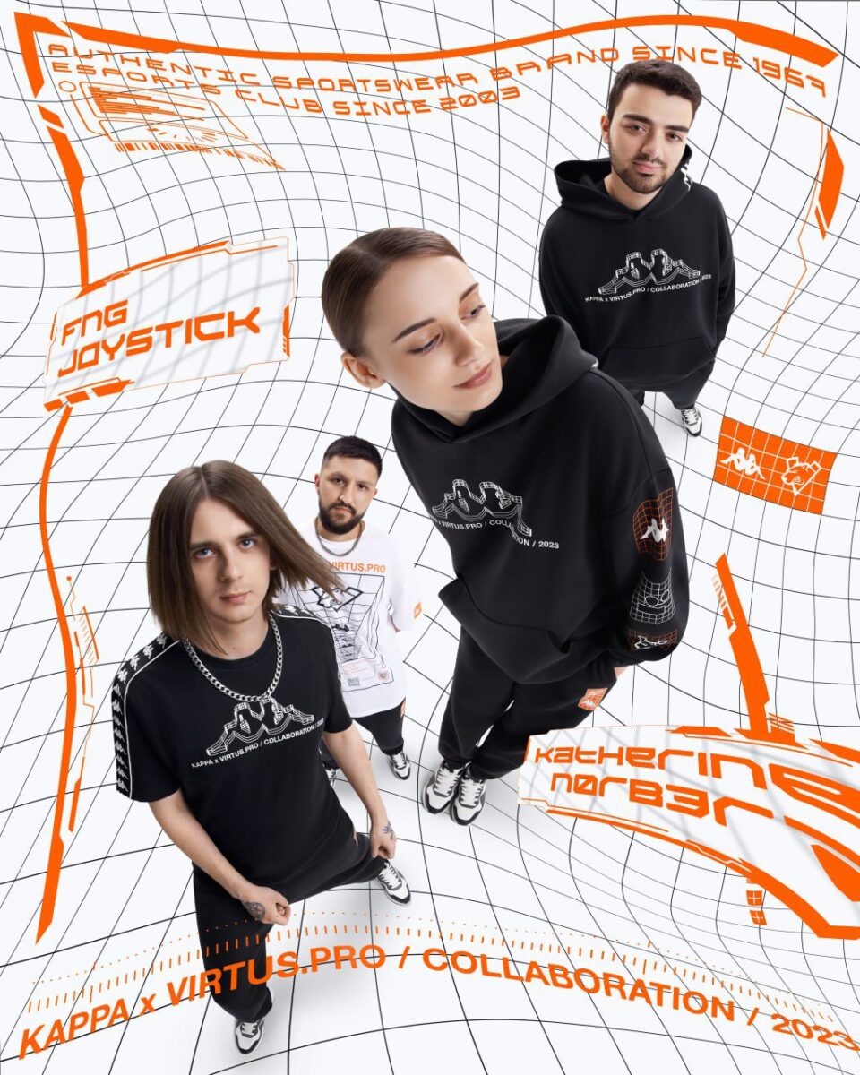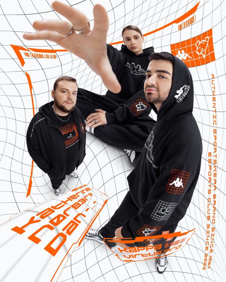 В капсулу вошли футболки, джоггеры, худи и толстовки на молнии, а также кроссовки с логотипом Kappa. Вся коллекция выдержана в черно-белой цветовой гамме с яркими акцентами оранжевого цвета — фирменного оттенка Virtus.prо. Коллекция совмещает функциональность киберспортивной формы и дерзкий дизайн, характерный для стритвира. Она вдохновлена спортивной стилистикой Kappa и динамичным миром гейминга киберспортивного клуба Virtus.pro.