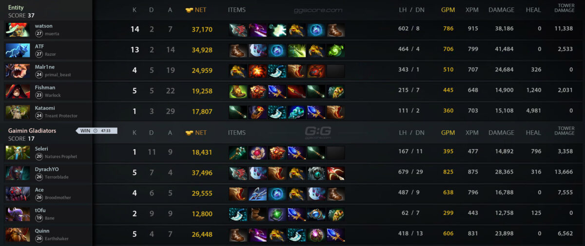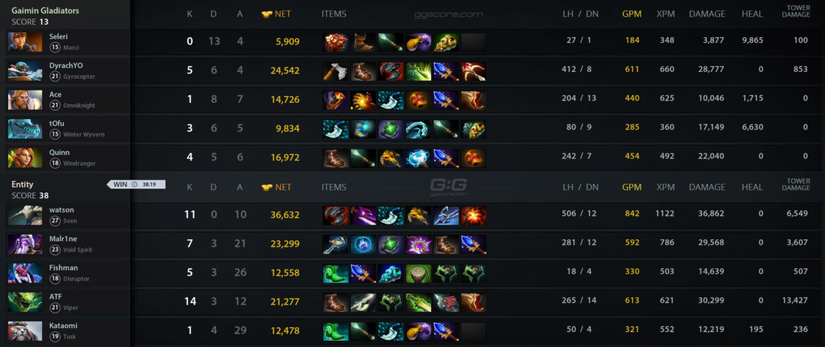 Состав Entity по Dota 2 прошел во второй рауд нижней сетки DreamLeague Season 21. В матче за попадание в топ-6 коллектив белоруса Дмитрия “Fishman” Полищука одержал волевую победу над Gaimin Gladiators — 2:1.