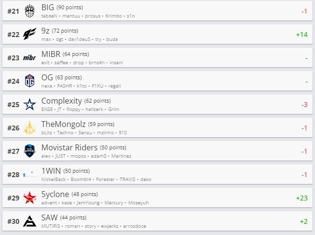 Белорусская организация Nemiga опустилась в рейтинге на 132-е место. Websterz и Betera поднялись на 98-е и 65-е место соответственно. ARCRED с Ренатом “hurtslxrd” Сапаровым на 58-м месте.