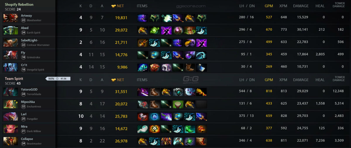 Team Spirit одолела Shopify Rebellion в финале верхней сетки плей-офф DreamLeague Season 21. Матч завершился со счетом 2:1. Коллектив прошел в гранд-финал , который запланирован на 24 сентября, 17:00.