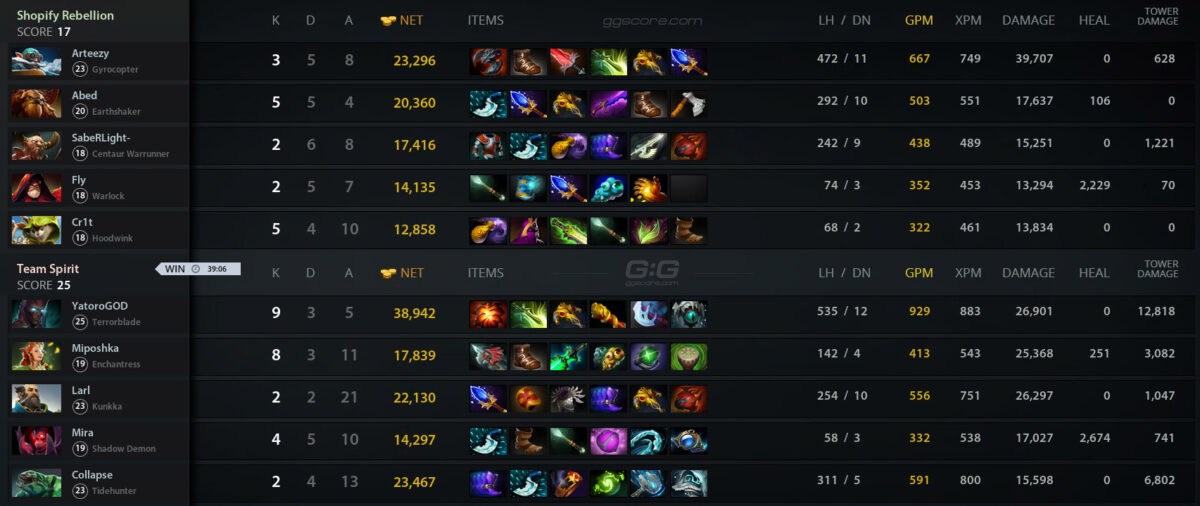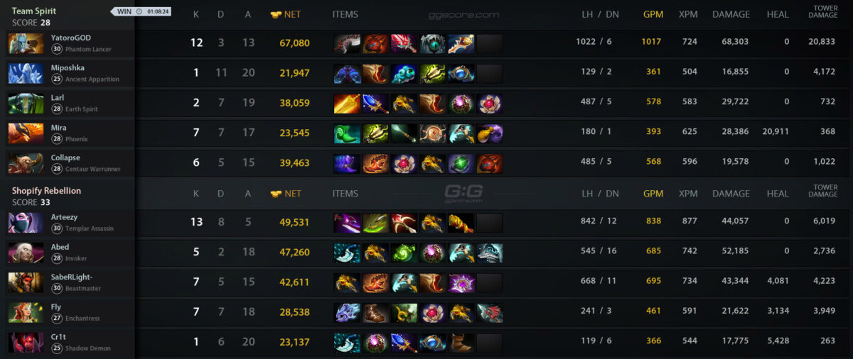В гранд-финале DreamLeague Season 21 состав Team Spirit со счетом 3:0 обыграл команду Shopify Rebellion и стал чемпионом турнира, заработав $300 тыс. призовых. Серебряным призерам досталось $175 тыс.