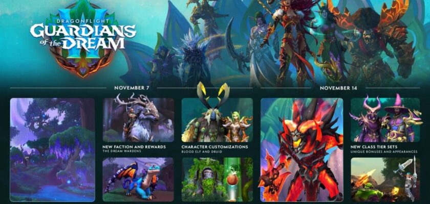 Неделей позднее, 15 ноября, начнется 3 сезон дополнения с рейдом “Амирдрассил, Надежда Сна” и эпохальными подземельями. В нем игроки смогут сразиться с девятью новыми противниками, последним из которых станет дракон Фиракк Пылающий. Готовится также PvP-потасовка “Блиц по полям боя”.