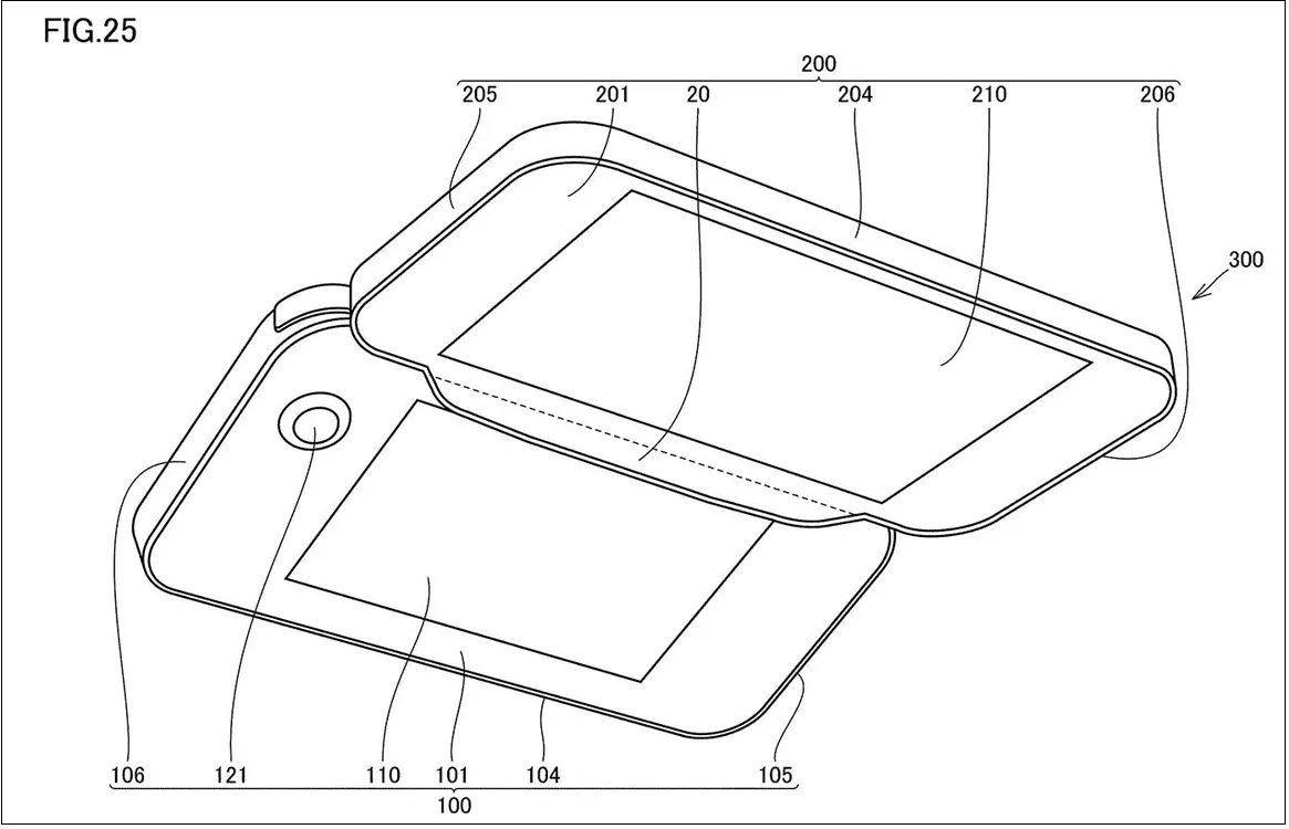 Кроме этого, существует патент, зарегистрированный самой Nintendo, который вызывает интерес. В нем изображено устройство с двумя экранами и шарнирами, что подогревает догадки о Nintendo Switch 2. Эти экраны, по патенту, могут использоваться как отдельные устройства, позволяя многопользовательскую игру через беспроводное соединение.