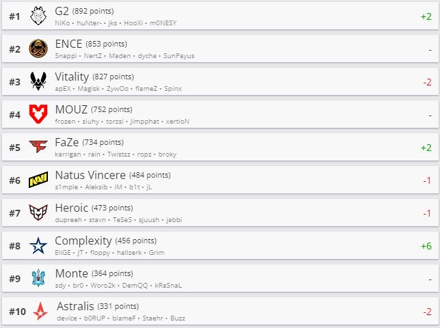Киберспортивный портал HLTV обновил рейтинг команд по CS 2. Новым лидером списка стала G2 Esports. Следом идут ENCE и Vitality.