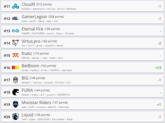 Betera занимает в рейтинге 81-ю строчку. ARCRED с белорусом Ренатом “hurtslxrd” Сапаровым поднялась на пиковое 49-е место. Nemiga — 156-я.