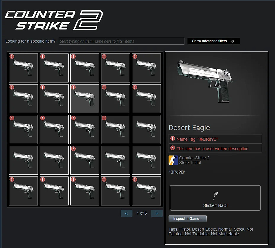 Ночью 24 октября Reddit заполонили посты игроков CS 2. Пользователи жаловались, что весь их инвентарь заполонили Desert Eagle в стандартном скине, а другие предметы просто исчезли. Valve оперативно отреагировала на ошибку и, на момент написания новости, устранила проблему. Однако о причинах сбоя разработчики ничего объяснять не стали.