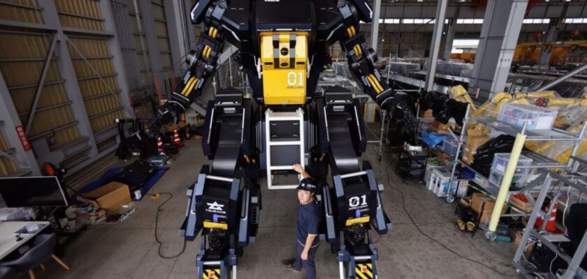 В Японии поступил в продажу пилотируемый робот Archax. Высота трансформера составляет 4.5 метра в высоту, а вес около 3.5 тонн, максимальная скорость передвижения до 10 километров в час.